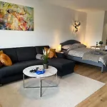 Beste Lage Mit ✰Bergblick✰ Parkplatz Und Netflix is furnished with a sofa featuring modern facilities like a flat-screen TV with satellite channels. All bathrooms have a separate toilet and a shower. You'll also come across hair dryers and towels.
